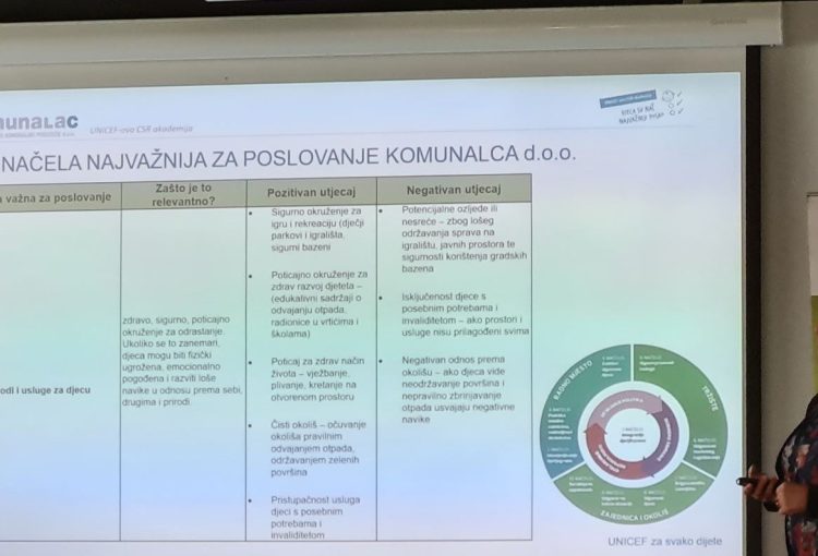 Komunalac d.o.o. sudjelovao je na UNICEF CSR Akademiji, edukacijskom programu usmjerenom na jačanje svijesti i kapaciteta tvrtki za primjenu društveno odgovornog poslovanja s posebnim naglaskom na dječja prava u poslovnom kontekstu.