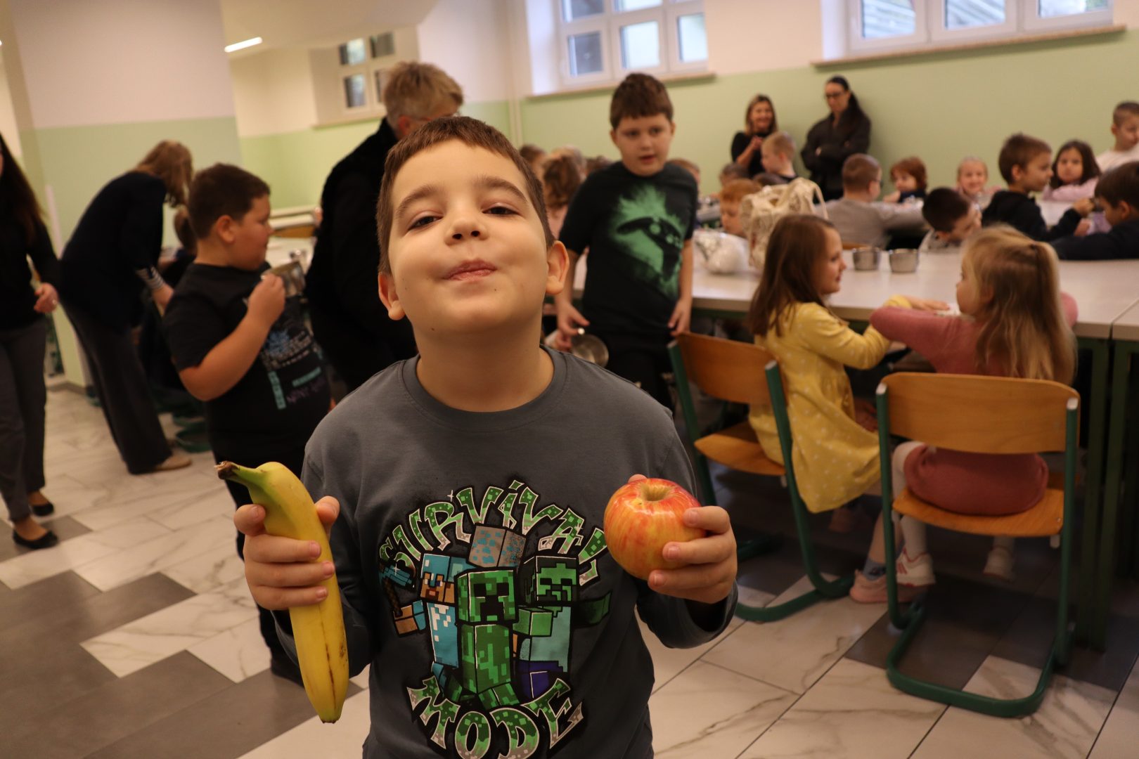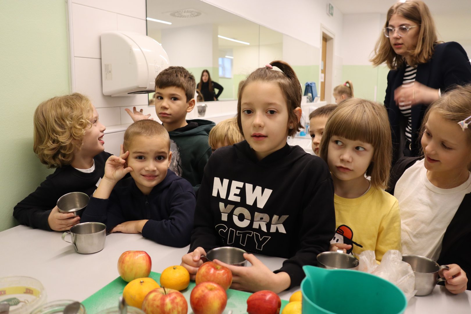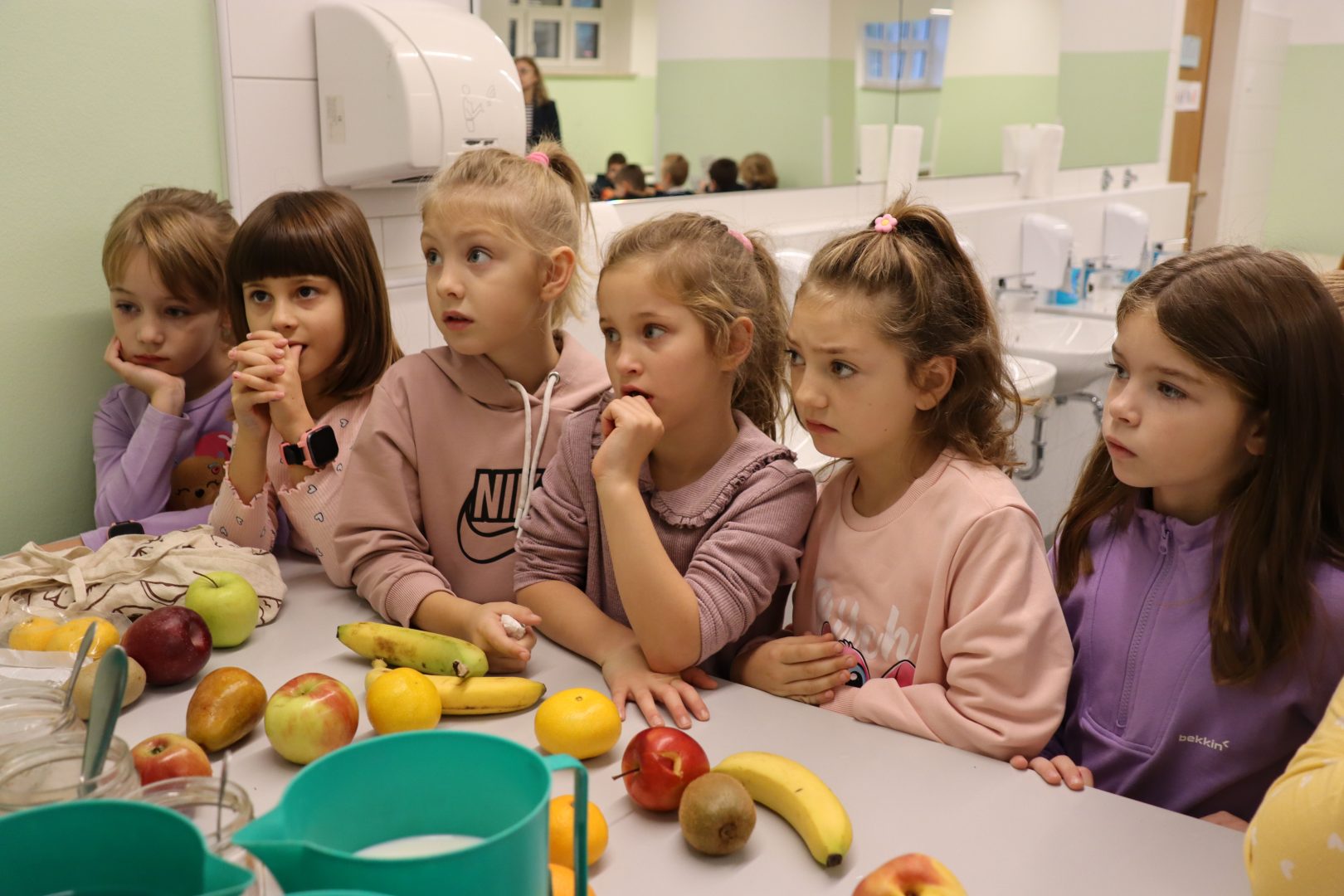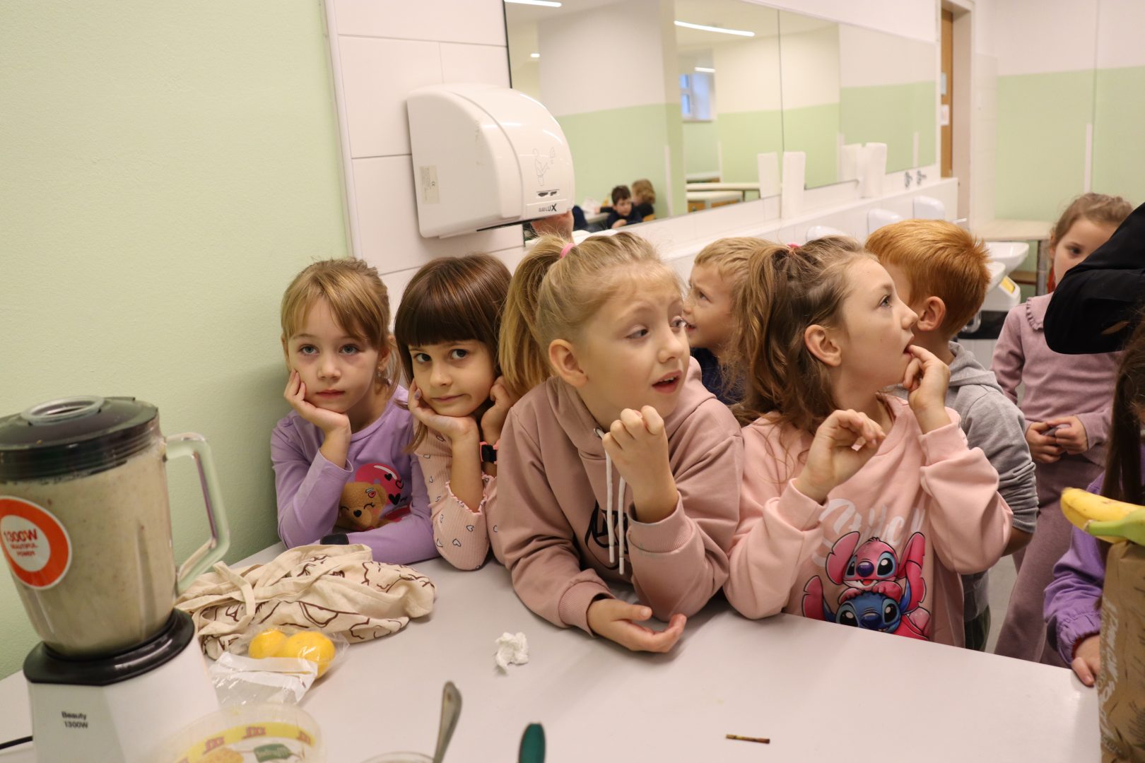 Današnja radionica održana je u osnovnoj školi Đuro Ester, gdje su učenici prvih razreda sa svojim učiteljicama s velikim zanimanjem sudjelovali u pripremi zdravih smoothie napitaka. Mali kuhari naučili su kako kombinirati različite voćne i povrtne namirnice te stvarati ukusne i hranjive napitke. Zajedno smo pripremali razne smoothie kombinacije, a učenici su za svaki napitak osmislili kreativna imena i ocijenili svoje favorite.