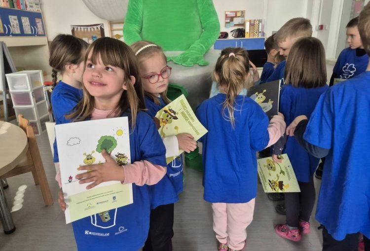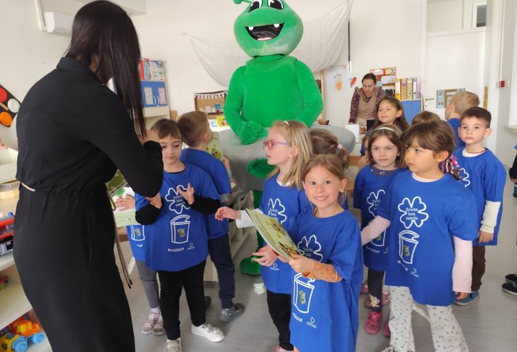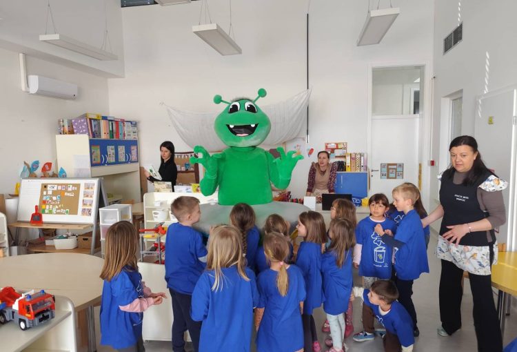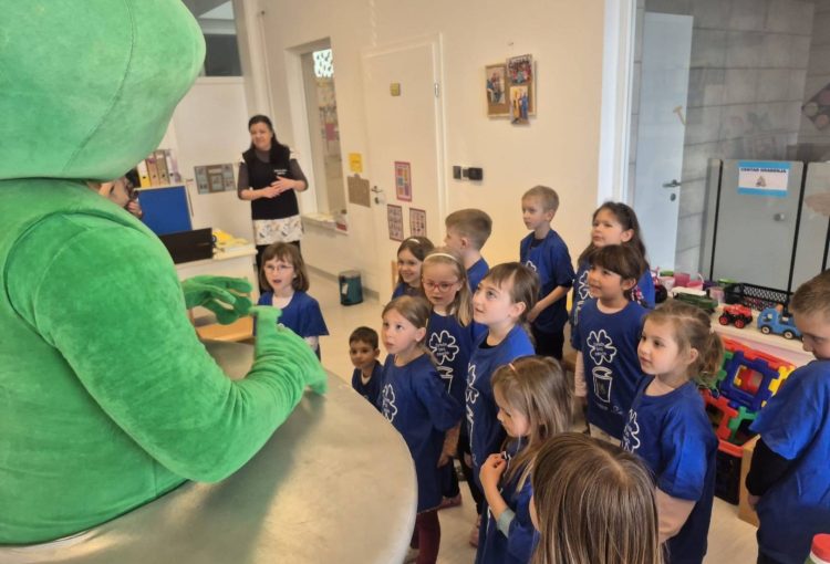 Nakon toga, edukativna aktivnost nastavljena je u dječjem vrtiću Vrapčić, gdje su predškolci skupine Iskrice kroz interaktivne igre i praktične primjere učili kako pravilno razvrstavati otpad. Kroz cijelu edukaciju vodio ih je Mirko Reciklirko, koji im je na zabavan i razumljiv način približio svijet recikliranja i kompostiranja.