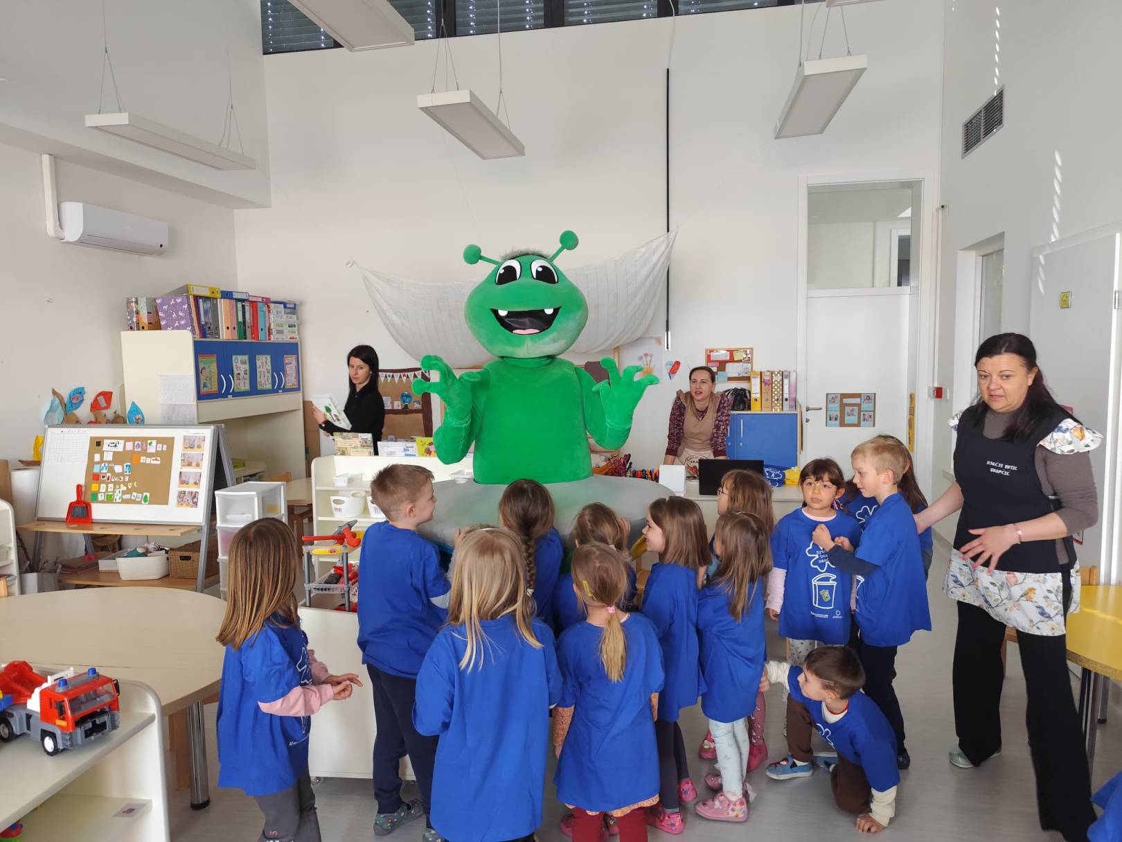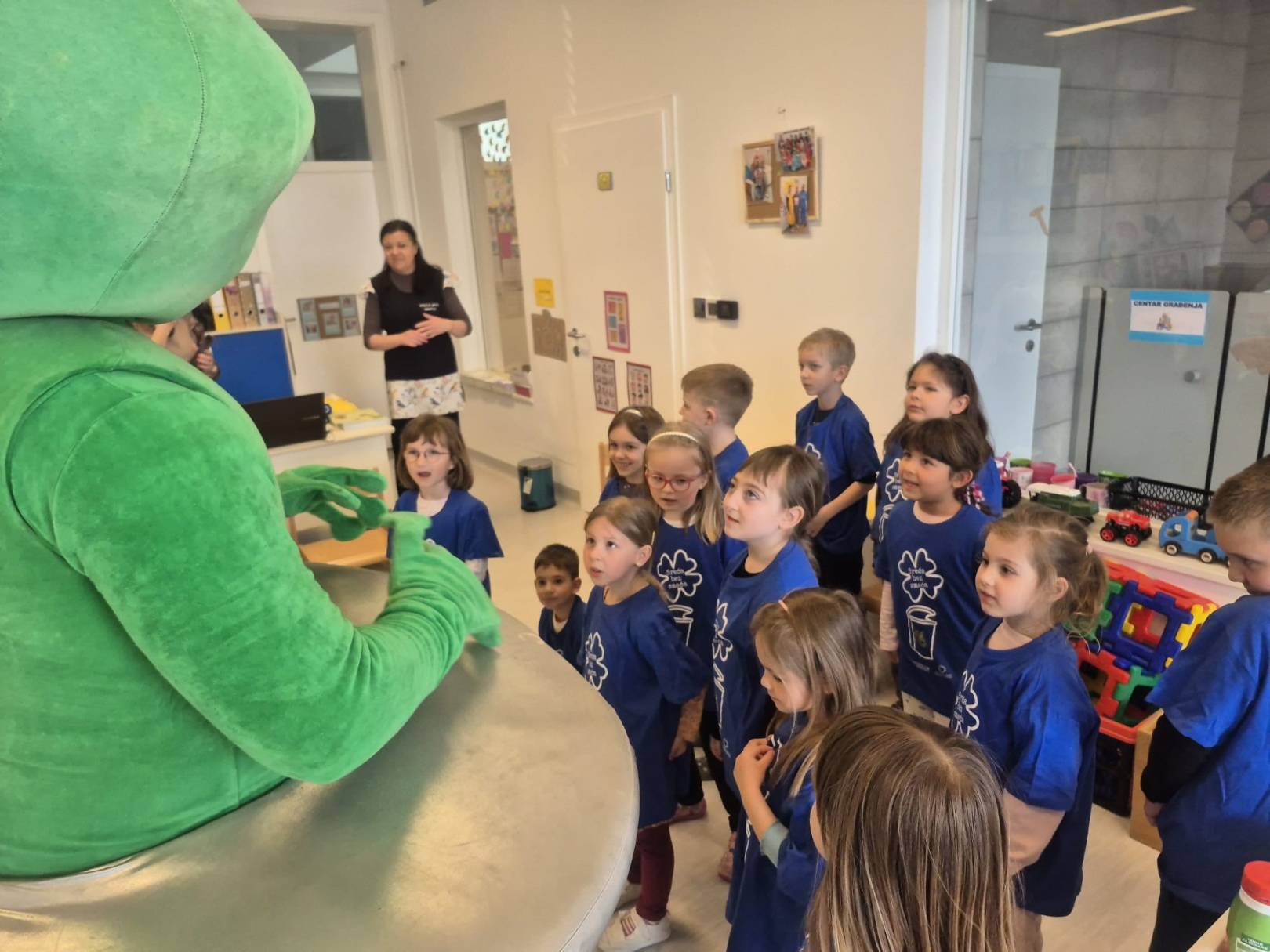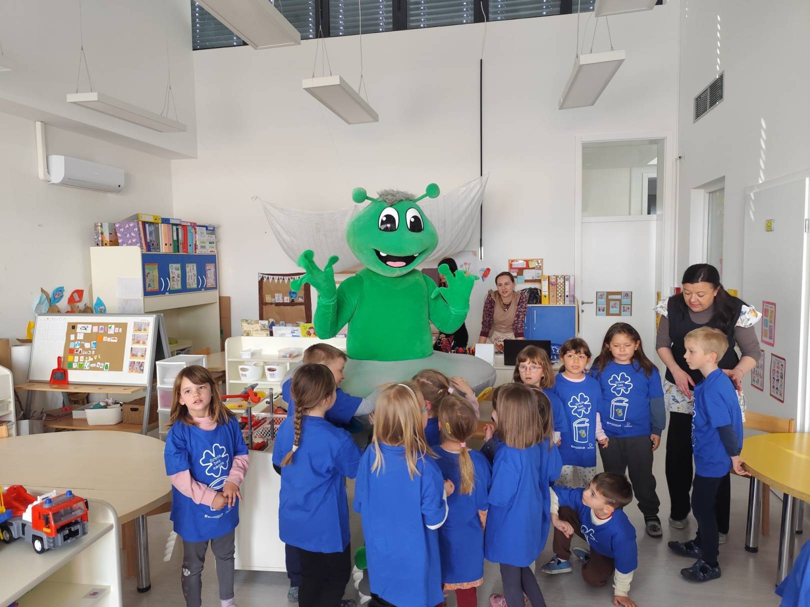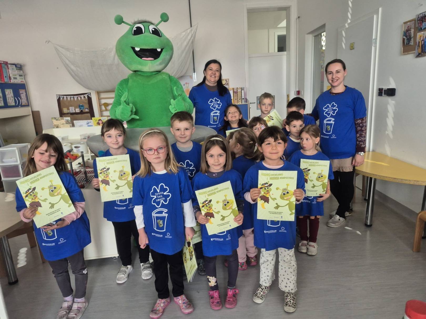 Nakon toga, edukativna aktivnost nastavljena je u dječjem vrtiću Vrapčić, gdje su predškolci skupine Iskrice kroz interaktivne igre i praktične primjere učili kako pravilno razvrstavati otpad. Kroz cijelu edukaciju vodio ih je Mirko Reciklirko, koji im je na zabavan i razumljiv način približio svijet recikliranja i kompostiranja.